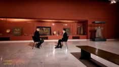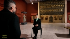 Dialogul este construit într-un spațiu cu o puternică încărcătură simbolică – Galeria de Artă Veche Românească din cadrul Muzeului Național de Artă al României, unde icoanele, obiectele liturgice și lumina care cade pe aurul picturii compun o atmosferă ce vorbește despre legătura indestructibilă dintre credință și cultură.