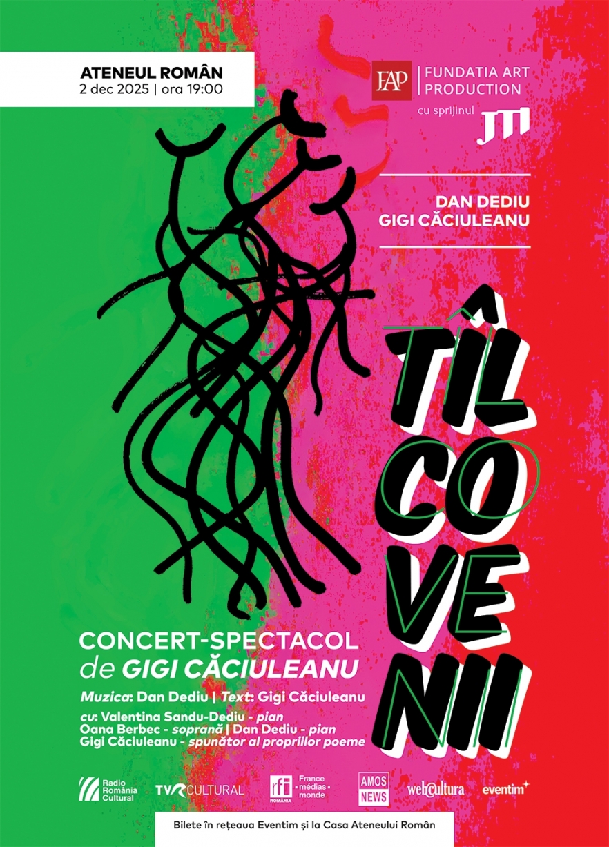 Telespectatorii TVR Cultural sunt invitați să urmărească un eveniment cultural inedit: difuzarea concertului-spectacol „TÎLCOVENII”, o creație originală ce îmbină poezia, muzica savantă și snoavele populare, semnată de maestrul coregraf Gigi Căciuleanu și compozitorul Dan Dediu.